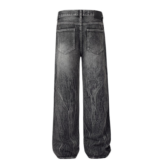 High Waisted Straight Leg Jeans For Women Butterfly Print Ripped Denim